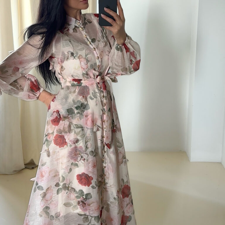 Ρομαντικό Midi Φόρεμα 100% Βισκόζη με 3D Λεπτομέρειες & Ζώνη